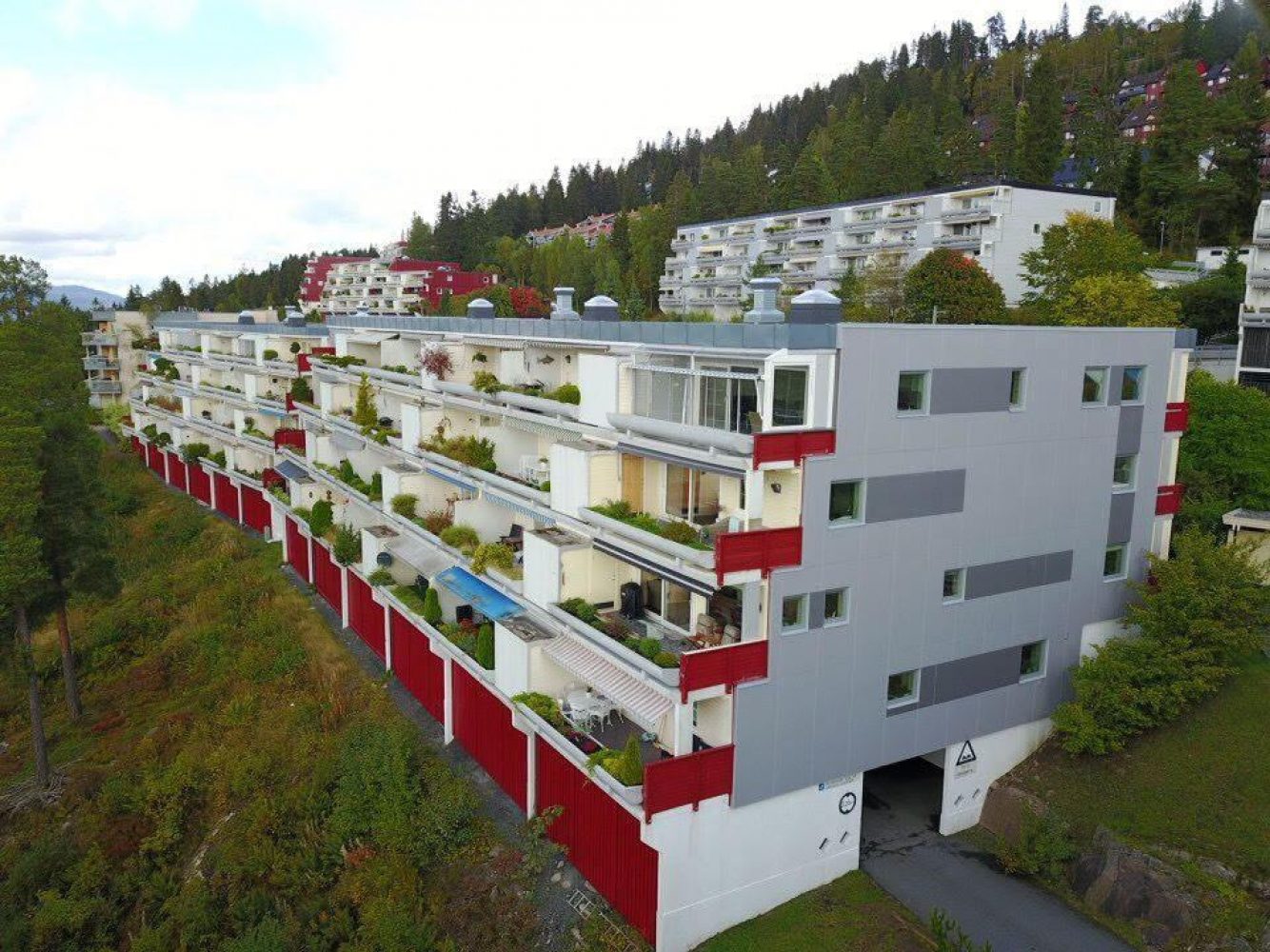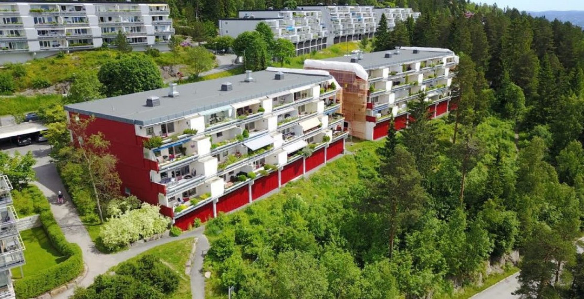 Bebyggelsen består av 2 terrasserte boligblokker med 48 leiligheter, oppført av Selvaagbygg i 1983. Selvaag Prosjekt har gjennomført tilstandsvurdering av bygningsmassen og med bakgrunn i den utført fasaderehabilitering med ny platekledning på gavlfasader, etterisolering med nye vindu og dører samt etablert nytt avfallsanlegg.